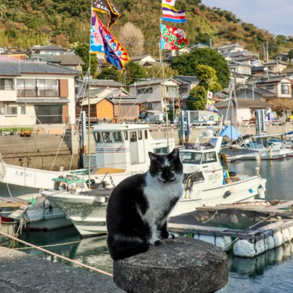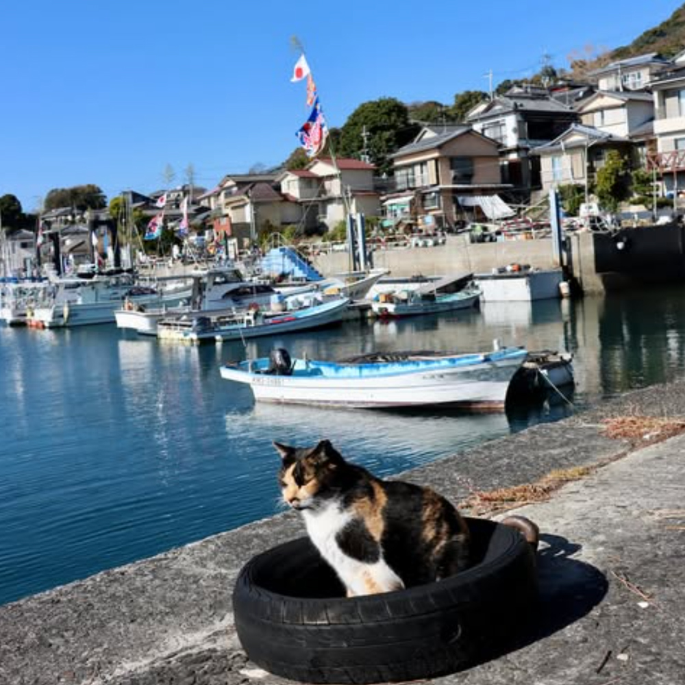 天草・湯島は「猫の島」としても知られ、島内には多くの猫が暮らしています。島民に大切にされながら、のんびりと過ごす猫たちの姿は、訪れる人々を癒してくれます。漁業が盛んな島のため、港や路地裏では猫たちが魚を狙う姿も見られ、愛らしい光景が広がります。観光客にも人懐っこく、猫好きにはたまらないスポットです。